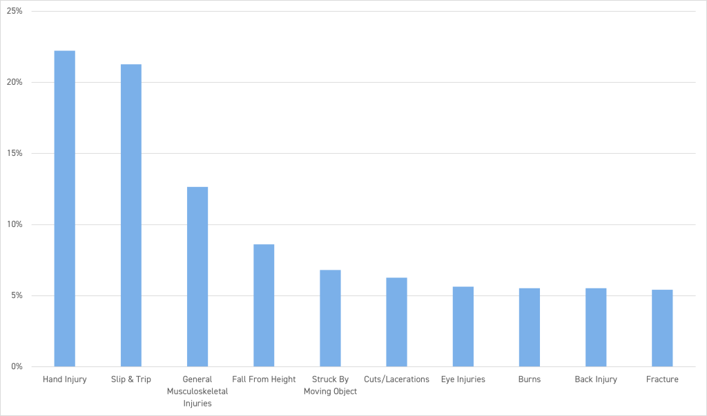 As the second most common cause of injuries, it is imperative to prevent their occurrence and address risks promptly when discovered. Slipping hazards are generally the results of leakage, spillage or poor housekeeping. Effective preventative measures include adequate maintenance, good operational practices and regular cleaning. Ongoing cleaning (not just upon completion of a task) during maintenance and other work can be overlooked but is vitally important to keep the workplace safe. Slips, trips, and falls can cause life changing injuries and are always avoidable. By encouraging active reporting, establishing robust procedures, and maintaining good housekeeping, their likelihood can be minimised.
